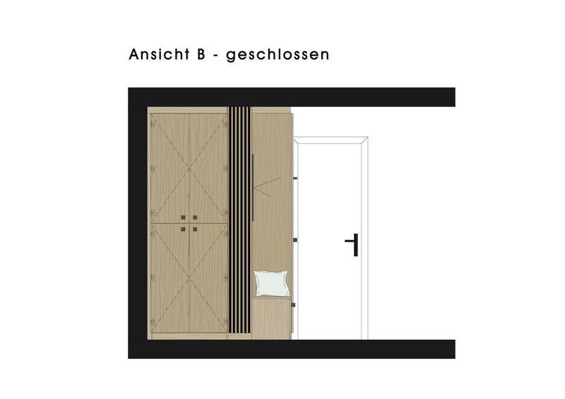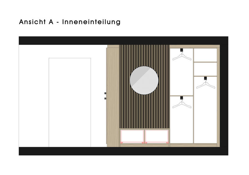 - raumhoher Jackenschrank für 1x Langhängen (Mäntel) und 2x Kurzhängen (Jaken) auf Kleiderbügelauszüge