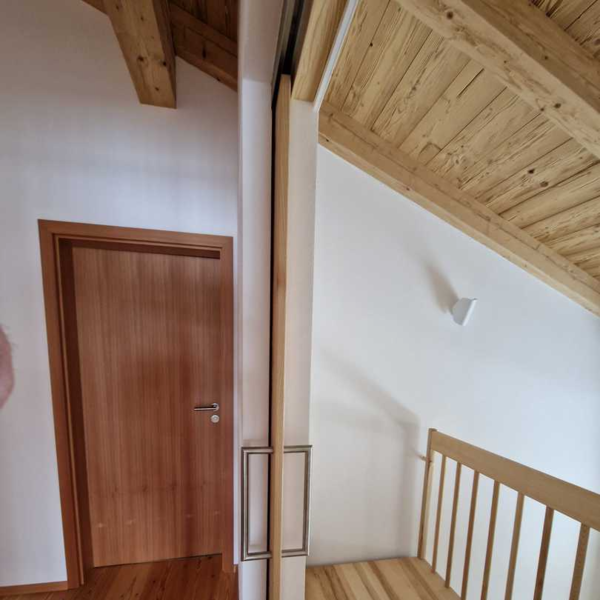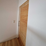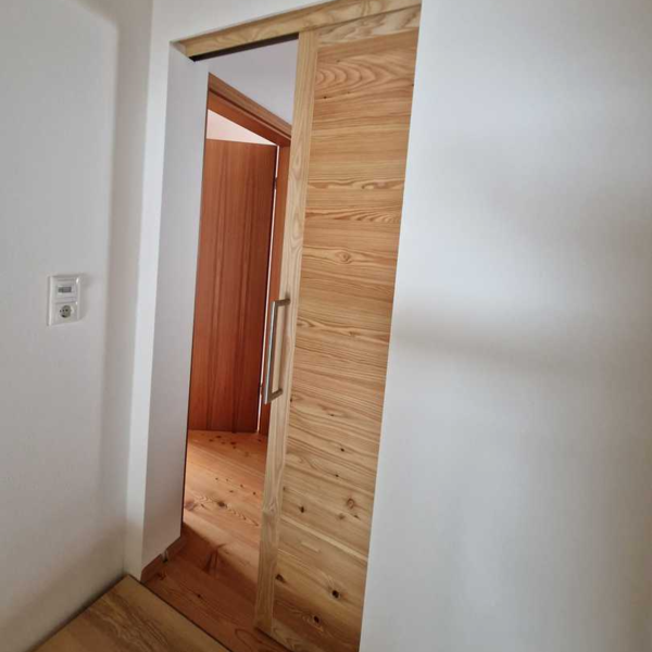 Eine Innen-Schiebetür aus Lärche in Kombination mit Esche.